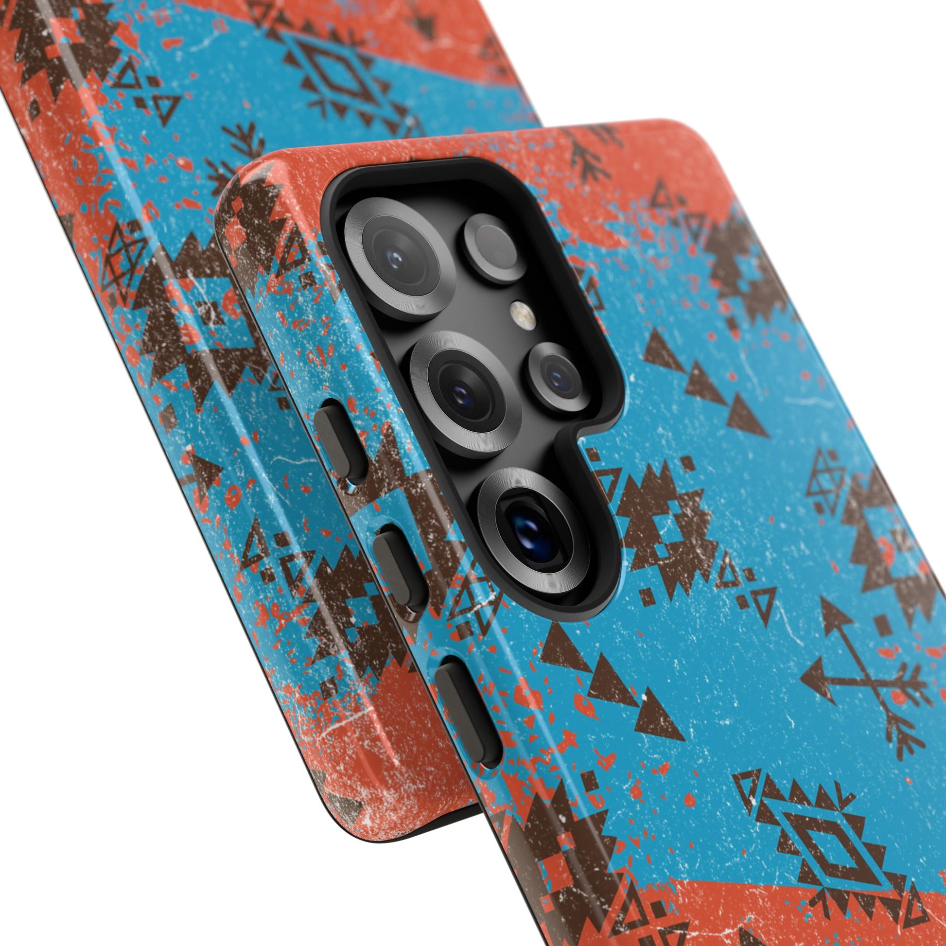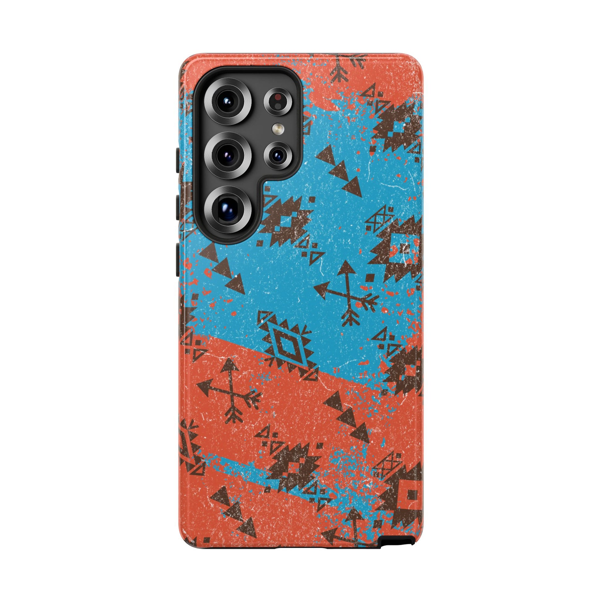 Orange Blue Aztec Grunge Tough Phone Case