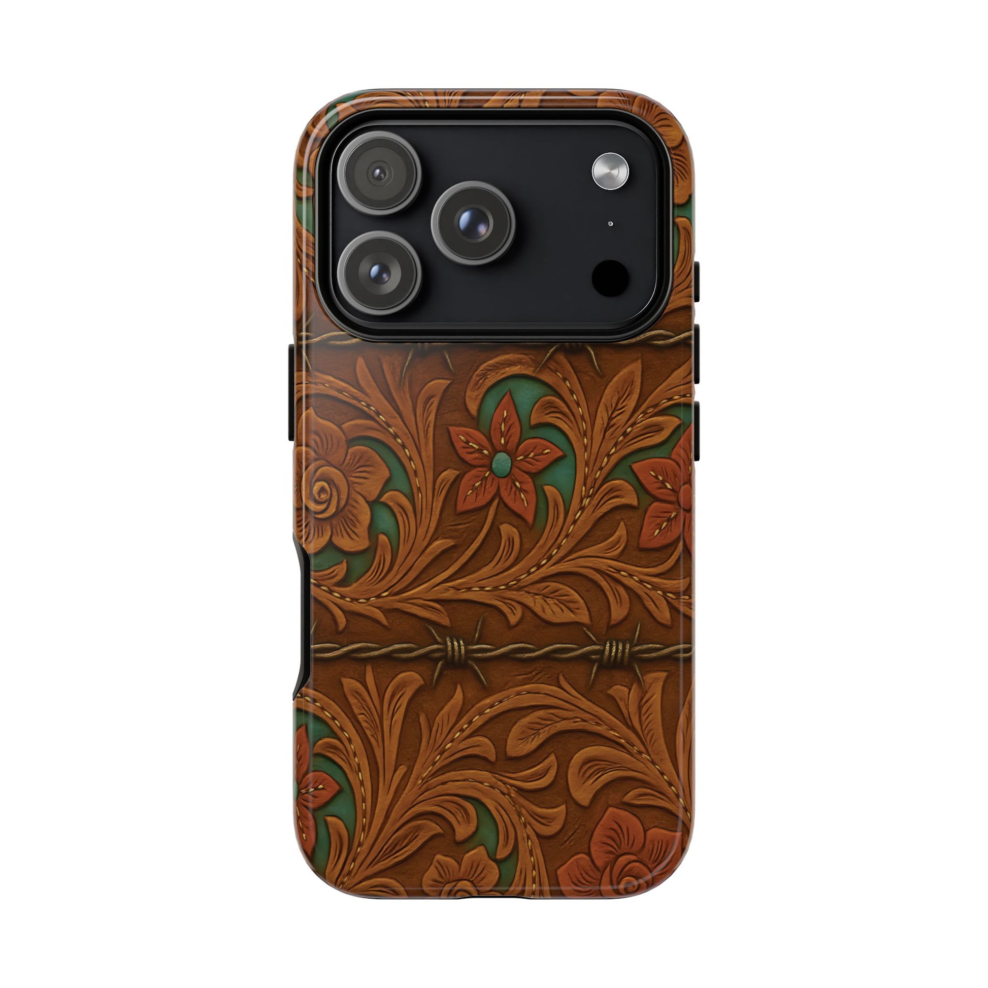 Faux Tooled Flowers + Barbed Wire Tough Phone Case
